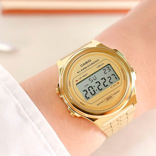 ساعت مچی کاسیو زنانه و مردانه مدل A171WEG_9A، ترکیبی از ظرافت کلاسیک و فناوری مدرن است که با طراحی منحصر به فرد خود، انتخابی ایدهآل برای بانوان و آقایان خوشسلیقه محسوب میشود. این ساعت زیبا از برند معتبر و شناختهشده کاسیو، با صفحهای طلایی رنگ و جذاب جلوهای لوکس و شیک به دستان شما میدهد. قاب و بندی از جنس استیل ضد زنگ به رنگ طلایی براق، استحکام و دوام بالایی به این محصول بخشیده است. طراحی ساده و در عین حال چشمگیر آن مناسب برای استفاده روزمره و همچنین مجالس رسمی است. صفحه نمایش دیجیتال واضح آن مجهز به امکانات کاربردی همچون تقویم، زنگ هشدار روزانه، نور پسزمینه برای دید بهتر در شب و کرنومتر برای سنجش دقیق زمان میباشد. این مدل ساعت کاسیو مقاوم در برابر نفوذ آب است که خیال شما را از بابت استفاده روزانه راحت کرده و در کنار زیبایی، کاربرد و کیفیت را نیز برای شما فراهم میآورد. با داشتن این ساعت خاص و جذاب، استایل خود را تکمیل کنید و از حضور در جمعها بدرخشید. ساعت مچی کاسیو مدل A171WEG_9A بهترین هدیه برای عزیزانتان است و خاطرهای ماندگار و ارزشمند را برایشان رقم خواهد زد.